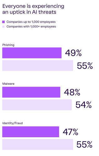 Another critical thing highlighted in this year’s report is a glaring AI readiness gap. Organizations are encountering not just more attacks, but more attacks driven by AI, ranging from phishing, fraud, and malware.