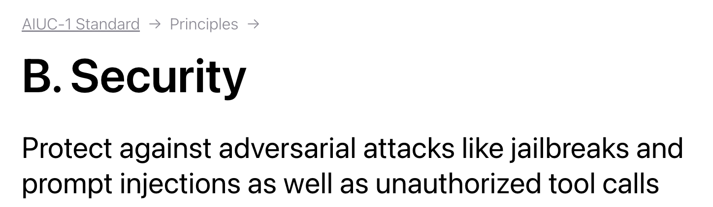 These requirements acknowledge a reality that narrower security standards often ignore, which is that AI agents aren’t just enterprise tools. They’re general-purpose capabilities that can be repurposed for harm at societal scale. Requiring organizations to implement guardrails against catastrophic misuse moves the conversation beyond enterprise risk management into responsible technology governance. It’s a signal that AIUC-1’s authors understand the stakes aren’t just regulatory, they’re civilizational.