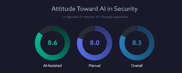 The study in this case with CSA had participants rank their attitudes towards AI in security, and surprisingly, there was a favorable view towards AI in security, with an overall average score of 8.3.