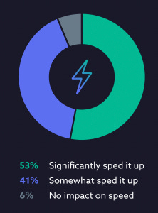 The majority reporting noticeable benefits in their investigation speed with the AI-assisted platform, with 53% saying it significantly sped up their investigation and 41% saying it somewhat sped it up
