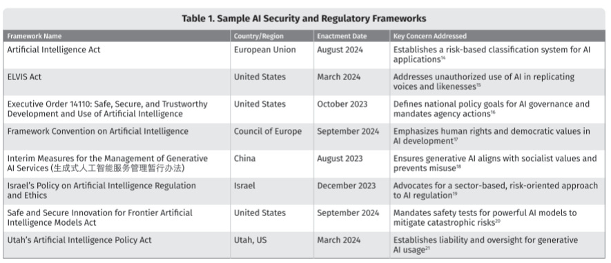 SANS makes the point that organizations must ensure their AI initiatives are aligned with applicable industry regulations to ensure compliance. They provide an example of AI security and regulatory frameworks: