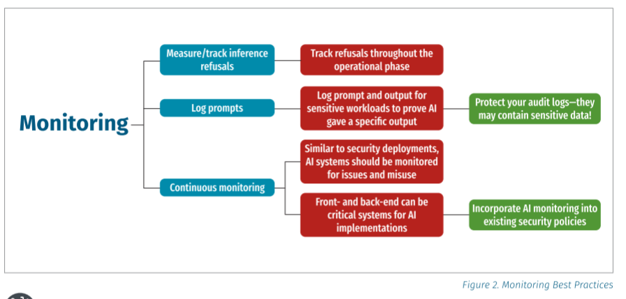 Rounding out the Inference Security section, SANS makes other recommendations, such as monitoring and controlling API usage, which makes sense as observing APIs can help identify anomalous and potentially malicious activities.