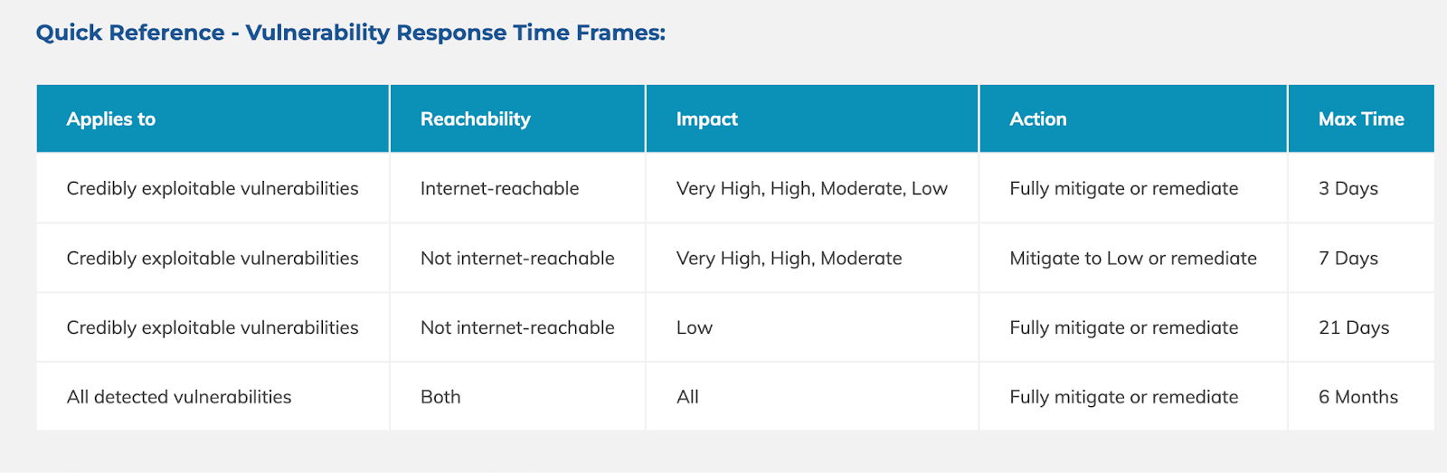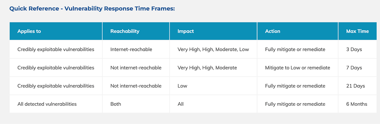 FedRAMP’s new continuous vulnerability management guidance then lays out tentative vulnerability response timeframes. Many may view these as aggressive, especially given the massive vulnerability backlog, competing priorities for developers, limited bandwidth, concerns about disrupting production, and more.