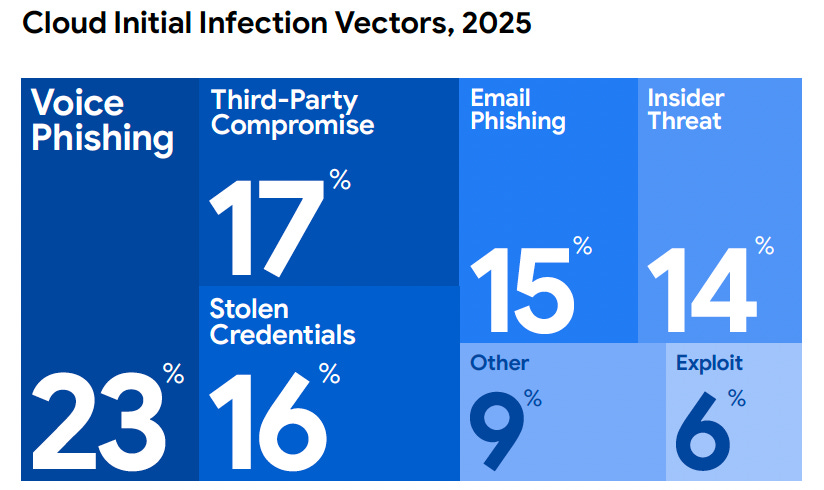 M-Trends 2026 dedicates significant attention to cloud compromises, and the findings are sobering. Mandiant reports that cloud-related incidents represented a growing share of their investigations, with identity and access management misconfigurations, overly permissive service accounts, and cross-environment lateral movement as recurring themes.