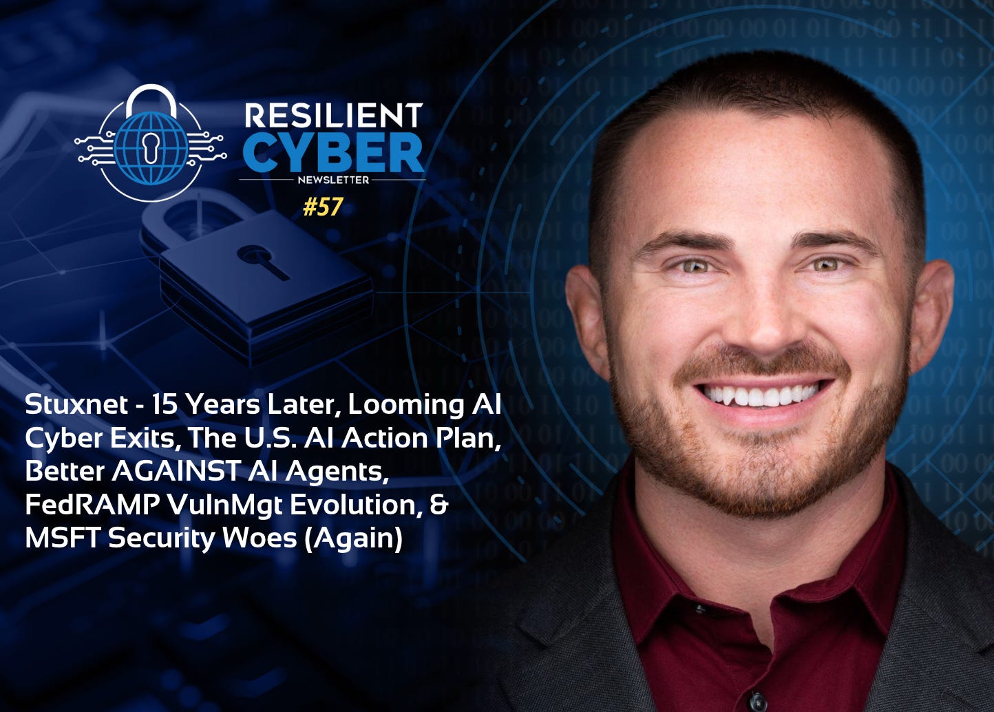 Stuxnet - 15 Years Later, Looming AI Cyber Exits, The U.S. AI Action Plan, Better AGAINST AI Agents, FedRAMP VulnMgt Evolution, & MSFT Security Woes (Again)