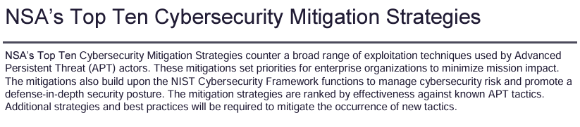 NSA’s Top Ten Cybersecurity Mitigation Strategies