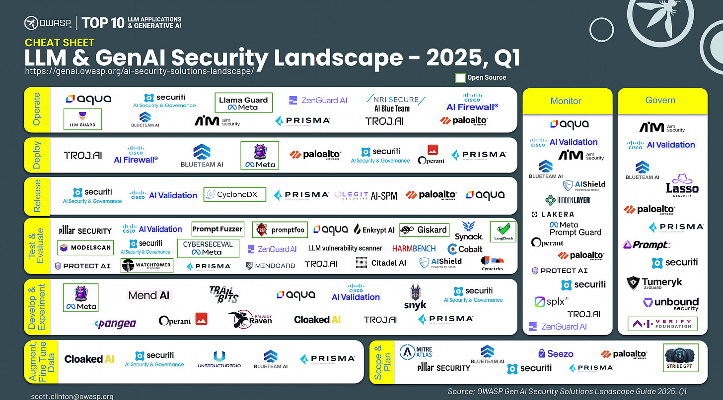 That is why it was great to see OWASP, the Top 10 LLM Applications, and the GenAI team release an “AI Security Solution Cheat Sheet Q1-2025.”