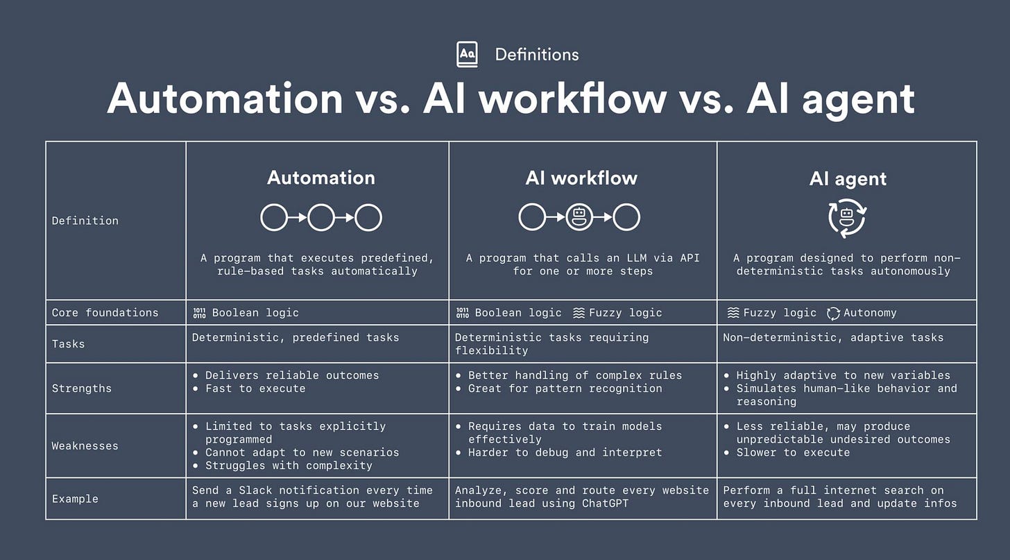 Automation vs. AI Workflow vs. AI Agent