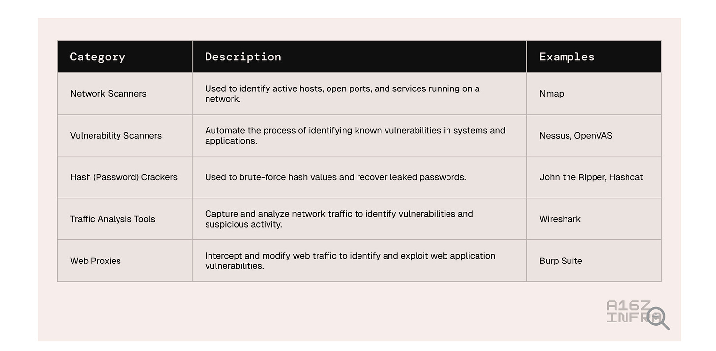 The article covers some of the traditional categories of Pentesting tools, with some examples (notice the emphasis on open source). It also discusses the typical pentesting phases from reconnaissance through reporting.