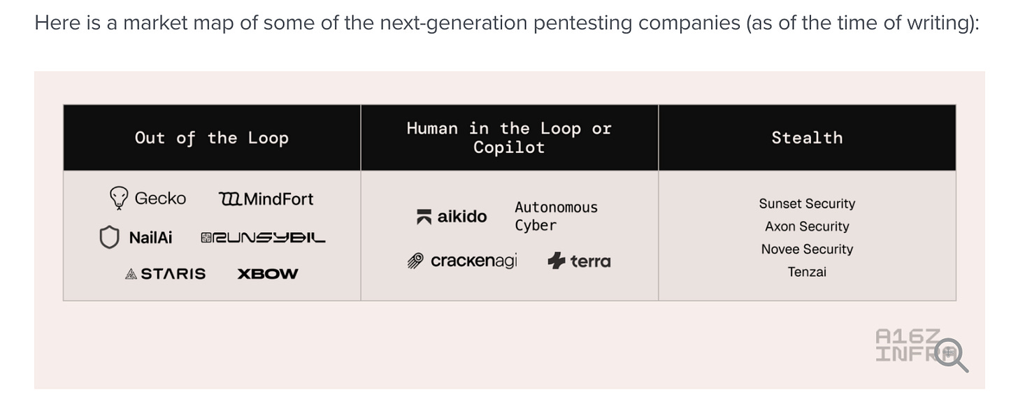 The article makes the case that pentesting of the future will shift from labor-constrained engagements to scalable AI-native systems able to match the pace of modern development through the combination of LLMs, traditional exploit tooling, real-time telemetry, and proprietary data (which is the actual moat in my opinion).