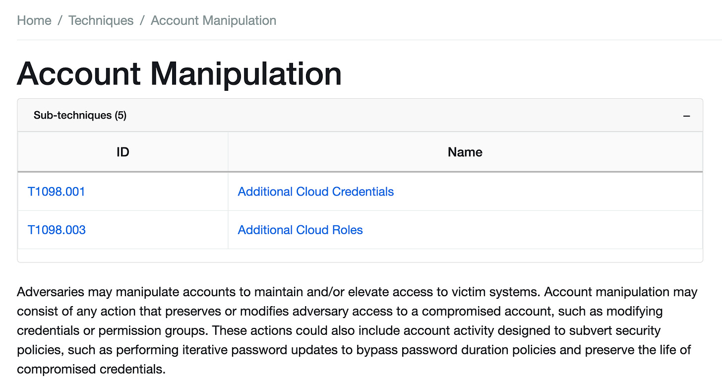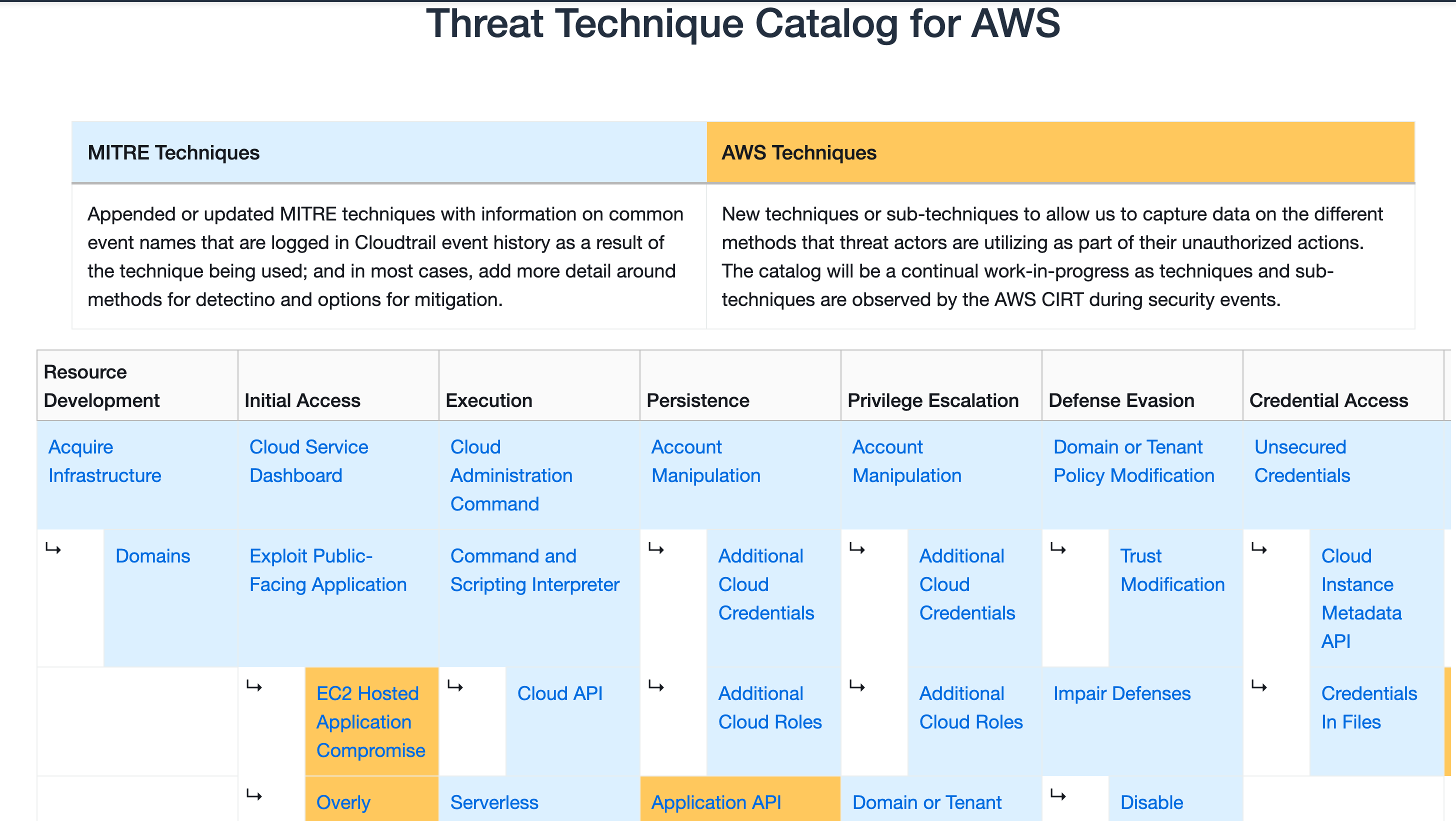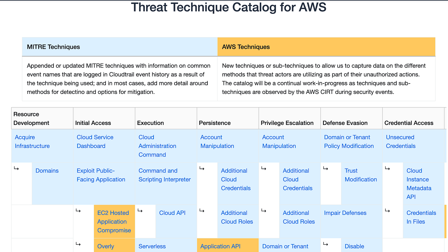 AWS remains one of the most dominant CSPs in the world, where organizations store and run critical and sensitive workloads. This Threat Technique Catalog for AWS describes techniques used by threat actors to take advantage of security misconfigurations or compromised credentials on the customer side of the shared responsibility model. It’s also based on MITRE ATT&CK.