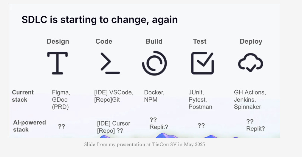 of Boring AppSec makes that case in a recent article.As he discusses, each aspect of the SDLC is changing from Design through Deployment, with new AI-powered technology stacks coming into play. Sandesh gave a topic focused on this at TiE Silicon Valley: