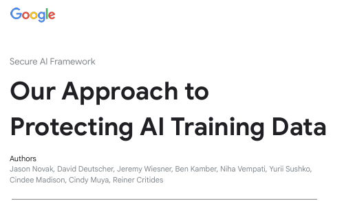 Google recently published a comprehensive paper discussing how they safeguard training data, including accounting for AI-specific risks such as memorization, data and model lineage concerns and aligning with their Secure AI Framework (SAIF).