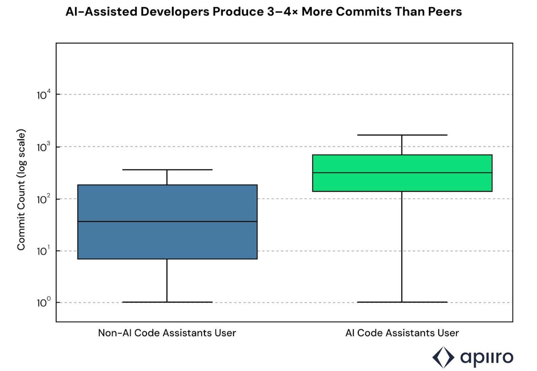 They found that AI-assisted developers were exponentially more “productive”, outputting more code than other developer peers.