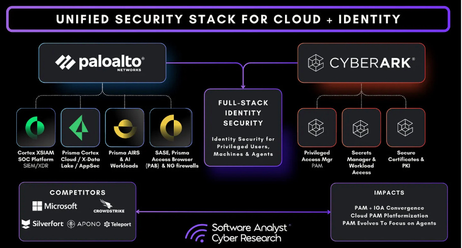 dug into that topic in a recent piece by and himself on the Software Analyst Substack.The piece dives into the acquisition and combination of PANW and CyberArk and the implications for identity security, as well as some of the organizations competitors and potential impacts in key identity security topics such as PAM, Secrets Management and more, as well as the integration into PANW’s security platform.