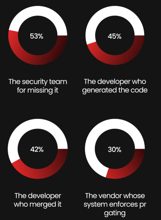 There’s also a lot of confusion of who should actually be responsible for the security of AI coding, with some pointing at the security team, others pointing at developers and some blaming vendors: