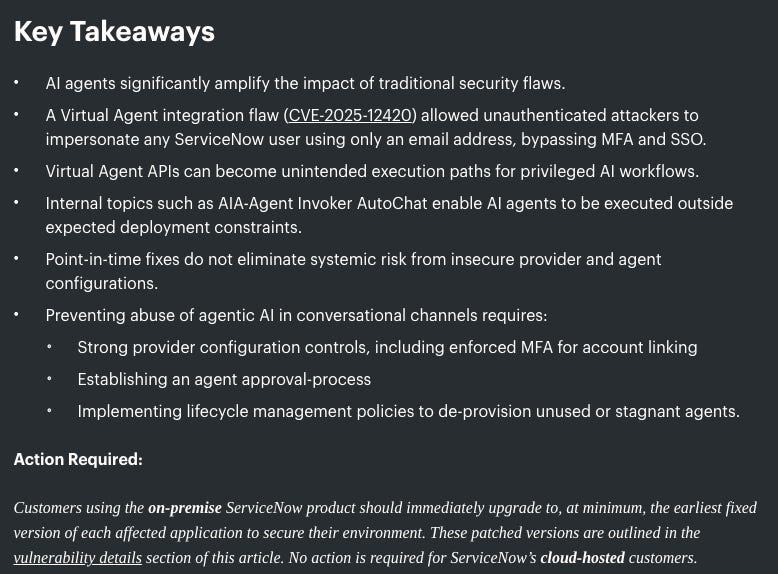 This recent research of vulnerabilities associated with ServiceNow's AI capabilities demonstrate how risks increase when organizations advance from LLMs and ChatBot's to Agents.