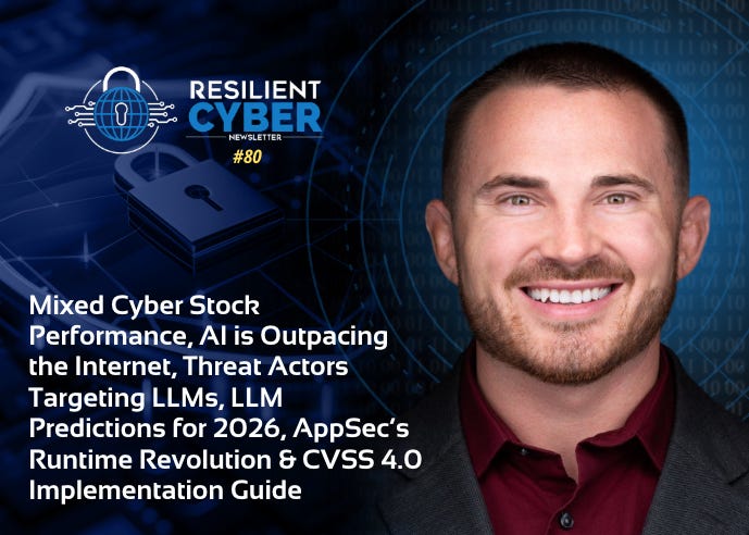 Mixed Cyber Stock Performance, AI is Outpacing the Internet, Threat Actors Targeting LLMs, LLM Predictions for 2026, AppSec’s Runtime Revolution & CVSS 4.0 Implementation Guide
