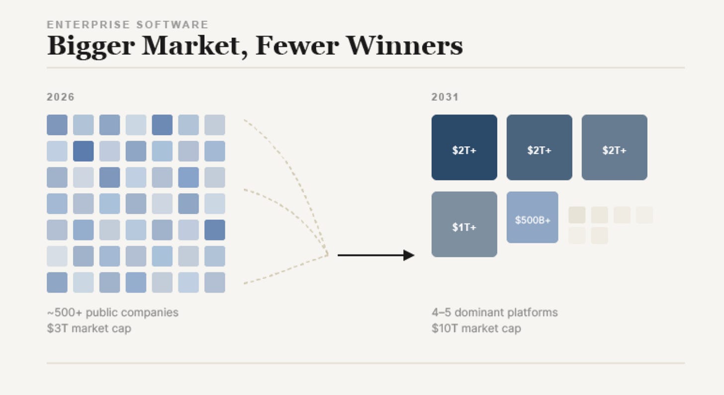 Konstantine Buhler framed the debate the industry is having about AI’s impact on SaaS: is this an apocalypse for software companies, or a consolidation where the strong survive? The numbers are hard to ignore. Following Anthropic’s release of the Claude Cowork AI platform, nearly $300 billion in global software market value was erased. Salesforce, Workday, Atlassian, and ServiceNow all took significant hits.