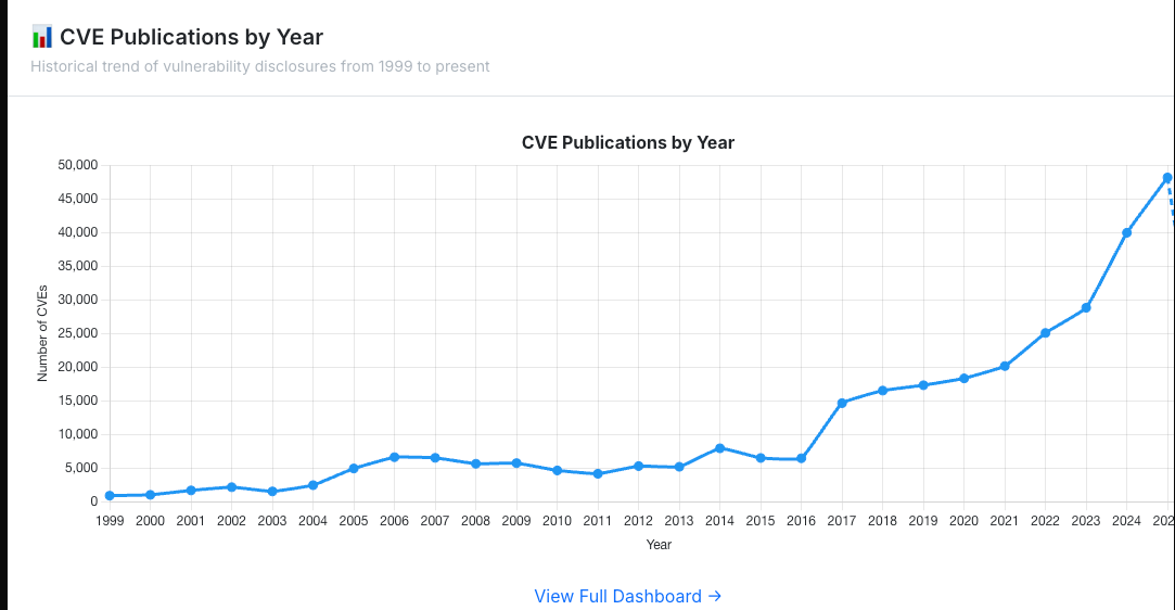 This isn't a trend that stabilizes, it's an exponential decay curve and it's compounded by volume, Jerry Gamblin's CVE.ICU shows a 520% increase in annual CVE volume since 2016, with over 48,000 CVEs published in 2025 alone.