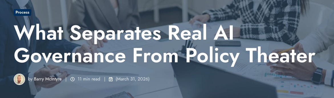 This piece articulates something I’ve been observing across the industry. Most AI governance programs are compliance theater. The real test, as my friend Rock Lambros from Zenity notes, is whether violations result in consequences. If silence follows a violation, you have theater, not governance.