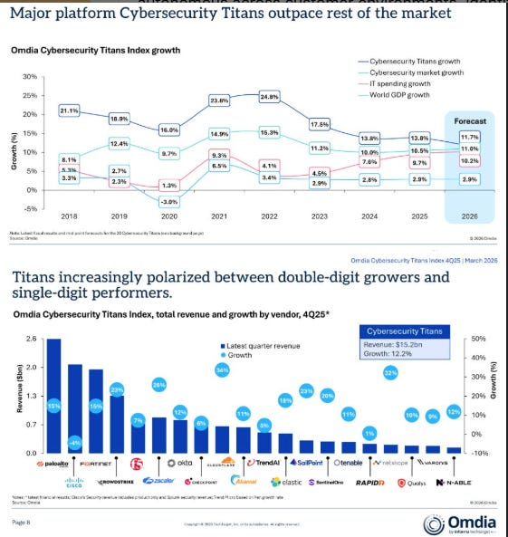 Jay McBain added critical context with his analysis showing cybersecurity is on track to reach $311 billion in 2026, with over 90% sold through channel partners. Services are growing faster than technology, and partners are critical for design, deployment, MDR, and operational support. That 90%+ channel dependency is a distribution reality that shapes everything from go-to-market strategy to vendor consolidation dynamics.
