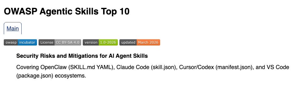 This is the software supply chain security playbook Tony Turner and I wrote about in Software Transparency, adapted for the agentic era. I’m encouraged by the pace at which OWASP is producing actionable guidance.