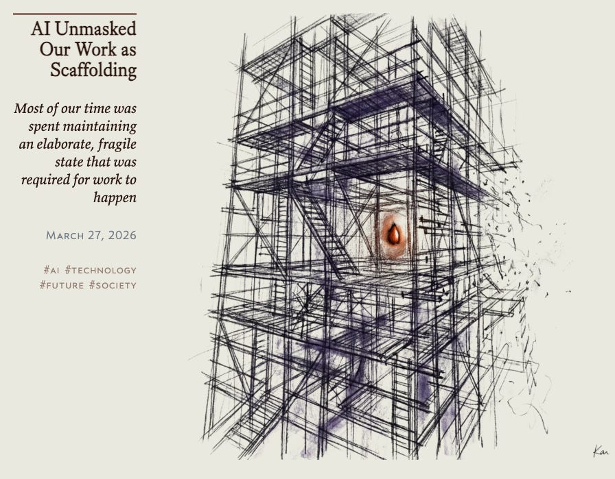Daniel Miessler published a thought-provoking piece arguing that 75-99% of knowledge work is scaffolding overhead, and AI is revealing just how small the actual “thinking” portion is.