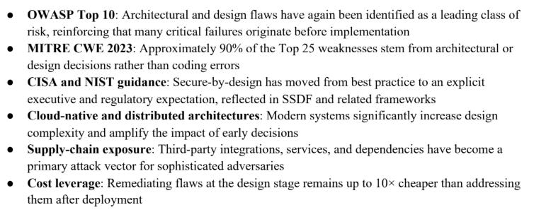 When I read that, it directly speaks to points I’ve tried to make previously with regards to the historical challenges of Secure-by-Design, such as in my article “The Elusive Built-in Not Bolted-On”.