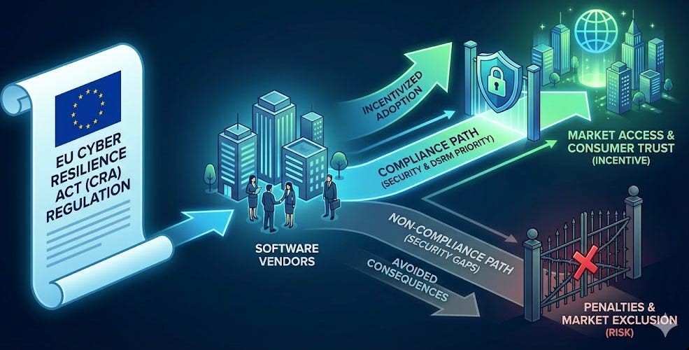 That is starting to change in some markets as well, most notably in the EU with the introduction of the EU’s Cyber Resilience Act (CRA). This introduces binding law that is applicable prior to products being placed on the market and helps enforce Secure-by-Design/Default principles across the entire product lifecycle.