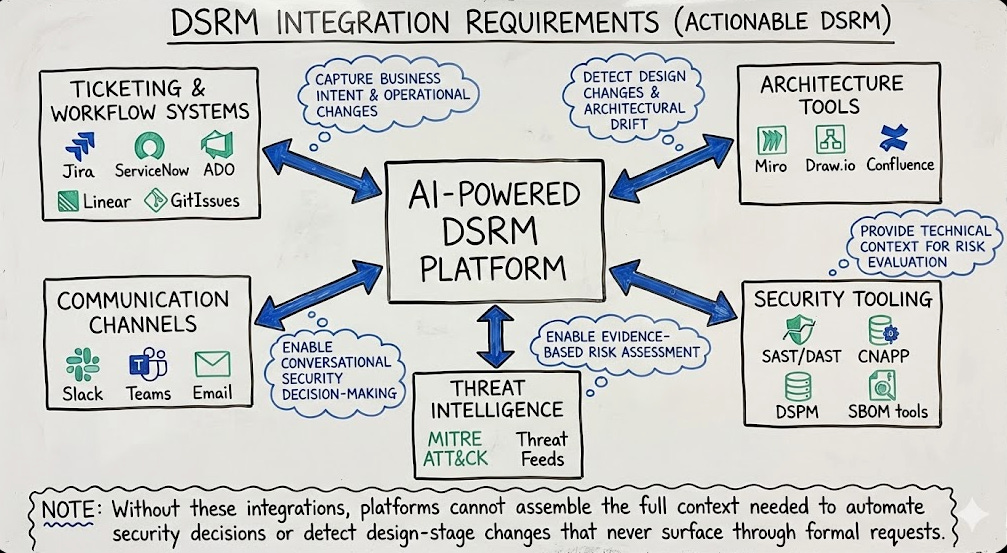 By leveraging DSRM and AI capabilities we have the opportunities to take these security decision-making activities from a loose process of dialogue and assumptions to an actual structured operating model, tapping into the various systems and workflows where product design takes place but security often isn’t a part of, or struggles to keep context for.