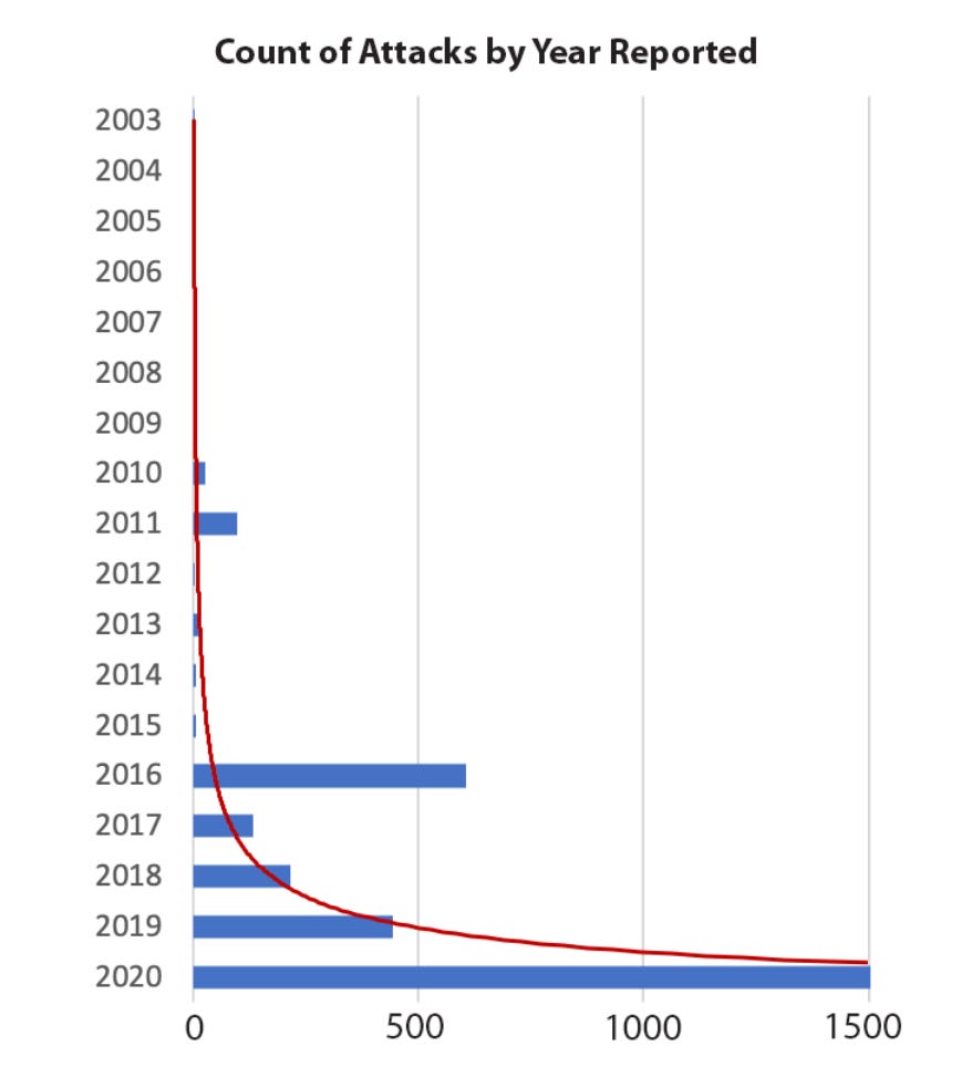Another excellent read on the topic is the paper released by folks from In-Q-Tel titled “For Good Measure Counting Broken Links: A Quant’s View of Software Supply Chain Security”. This whitepaper discusses the rapid increase in software supply chain attacks as well as applies some categorization to help organize them.
