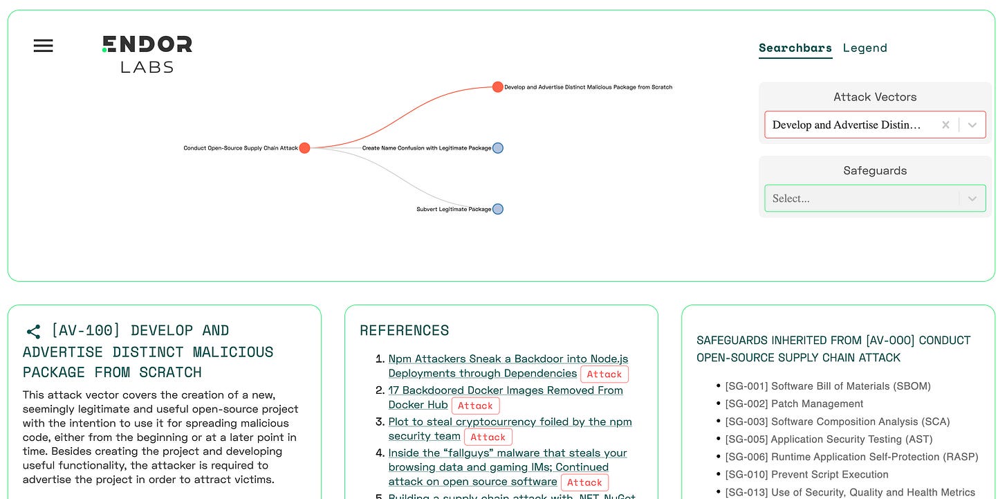 A great tool to use to help visualize the variety of attack vectors and correlating safeguards is the “Risk Explorer” which builds on work from SAP Security Research and was recently announced and shared by Endor Labs, which you can play with for free, here.