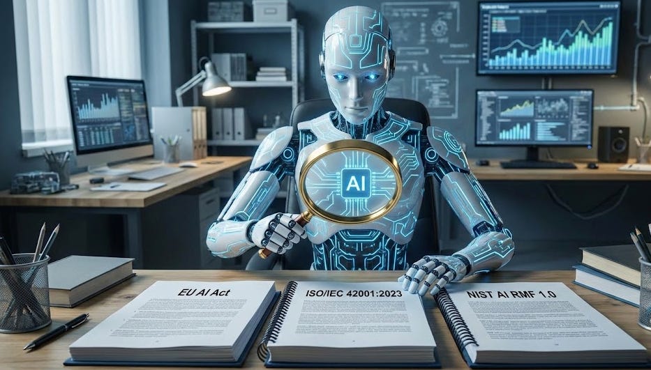 The three most cited resources in AI governance today, the NIST AI Risk Management Framework, the EU AI Act, and ISO 42001, share something in common beyond their influence.
