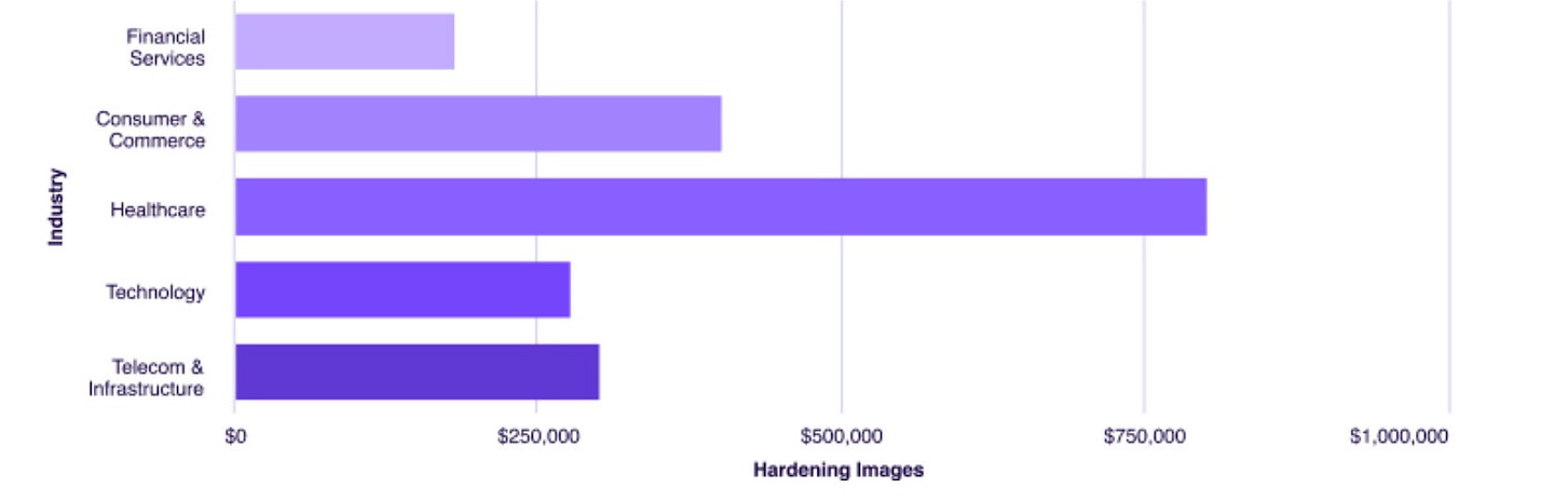 Their report demonstrated how companies are often spending hundreds of thousands of dollars to remediate vulnerabilities and harden container images, often to meet regulatory requirements. This of course is an activity that isn’t their core competency and isn’t tied to why those companies ever started their businesses.