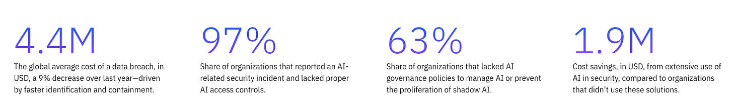 IBM’s 2025 Cost of a Data Breach Report, subtitled “The AI Oversight Gap”, painted a stark picture. 97% of organizations reported an AI-related security incident and lacked proper AI access controls. 63% of organizations lacked AI governance policies to manage AI usage or prevent shadow AI proliferation. These numbers should be alarming to anyone paying attention.