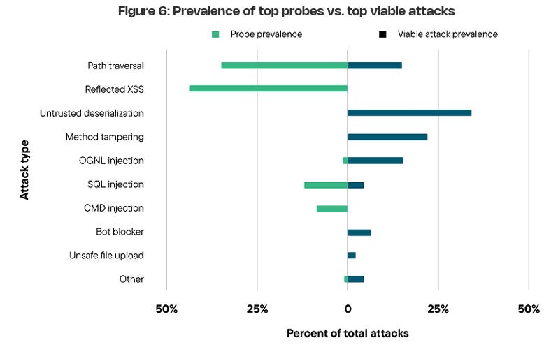 One of the most insightful aspects of the Contrast report for me, and one that really emphasized the need for ADR and deep runtime application context, is when they put probes and viable attacks side by side.