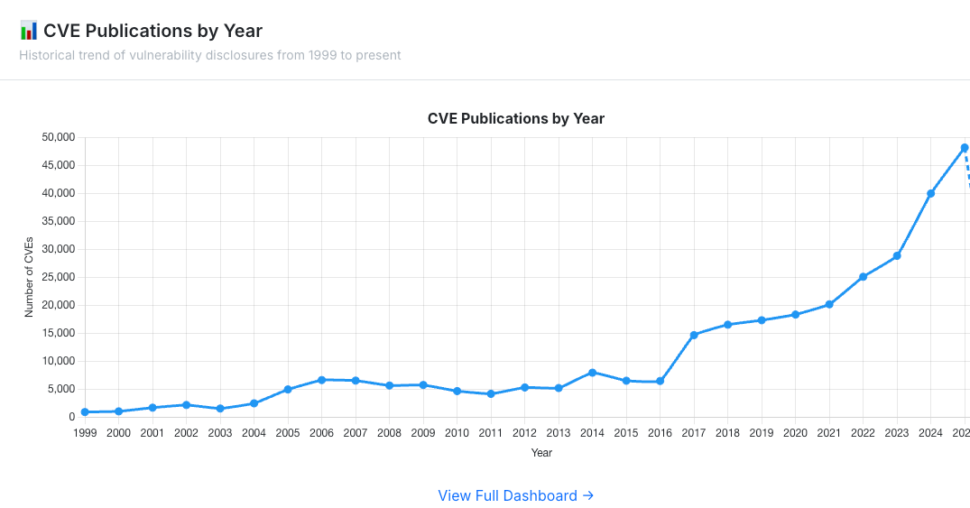 The collapse of exploitation timelines is compounded by another trend that’s equally alarming: the sheer volume of vulnerabilities is growing exponentially. CVE.ICU, an open-source tracking project maintained by security researcher Jerry Gamblin, visualizes this clearly.