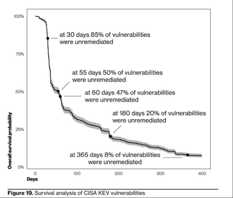 The CISA KEV data reinforces this, it takes organizations around 55 days to remediate 50% of vulnerabilities once a patch is available, patching doesn’t pick up until the 30-day mark, and by the end of the year nearly 10% are still open. When the median TTE is measured in hours, those timelines aren’t just inadequate — they’re irrelevant.