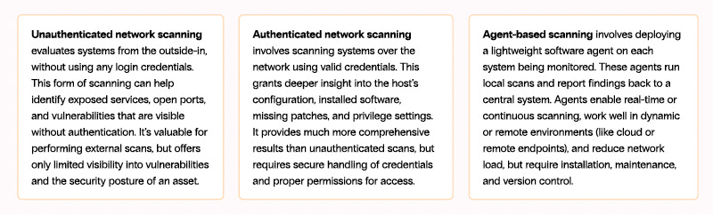 Zafran discusses some common gaps organizations have in vulnerability management, such as a lack of comprehensive scanning coverage, frequency, and depth. Zafran’s CTEM guide highlights the three primary means of vulnerability scanning: