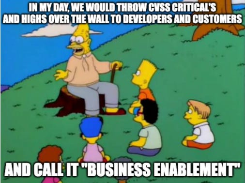 The organizational context is key here, not just CVSS base scores, which, unfortunately, is still how many organizations operate. They focus on “Critical” and “High” CVEs per CVSS, regardless of whether they’re known to be exploited, likely to be exploited, reachable, the potential organizational impact, compensating controls, and other factors.