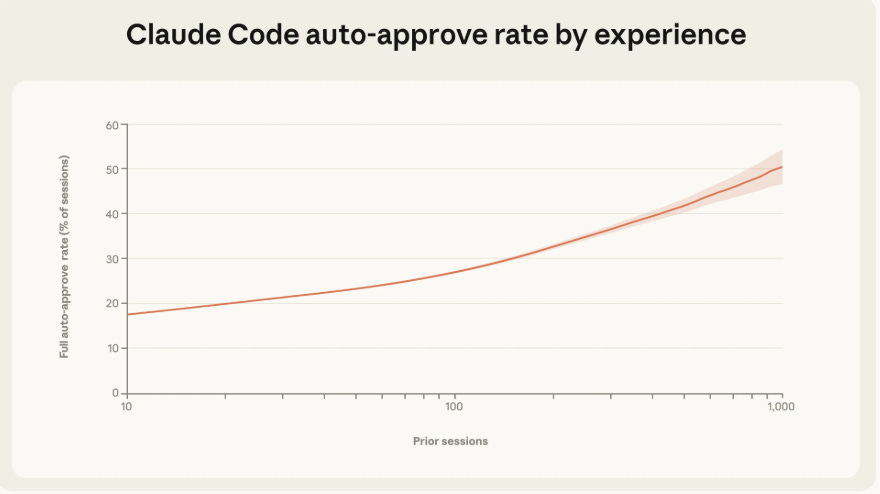 That said, as I said above and have been emphasizing for a while now, that cybersecurity needs to pivot from being a typical late adopter and laggard to being an early adopter and innovator with AI. The incentives for speed and winning outweigh the incentives for foundational security, a tale as old as time when it comes to cybersecurity. This is playing out in Anthropic’s own data, such as their recent report on measuring agent autonomy, where they found as users have more sessions with Claude, they increasingly just run it on full auto-approve, rarely stopping to interject.