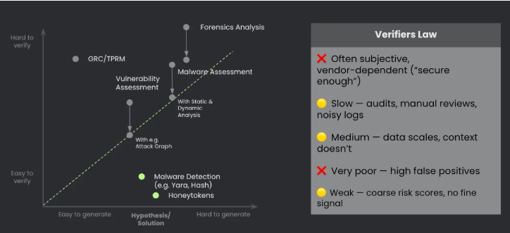 He pointed out that AI will win where verification is easy, which in terms of cybersecurity use cases, is much more applicable in AppSec and code analysis than it is in more subjective fields such as TPRM, GRC etc. (although much can be verified there too).